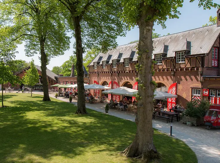 U bent het park binnengekomen via het Stalplein. Hier stonden de paarden, koetsen en de auto's van de familie Van Zuylen van Nijevelt. Lees hieronder meer over het Stalplein.