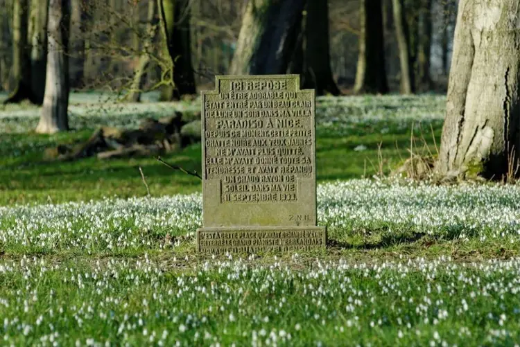 We lopen hier op het Kattepad. Het pad dankt zijn naam aan het katje van Barones Hélène dat hier begraven ligt, een klein zwart katje met gele ogen volgens de tekst op de steen. Onder de steen van het katje, ligt nog een gedenksteen. Ter nagedachtenis aan de Nederlandse pianist en componist Eduard Zeldenrust (1865 - 1910).